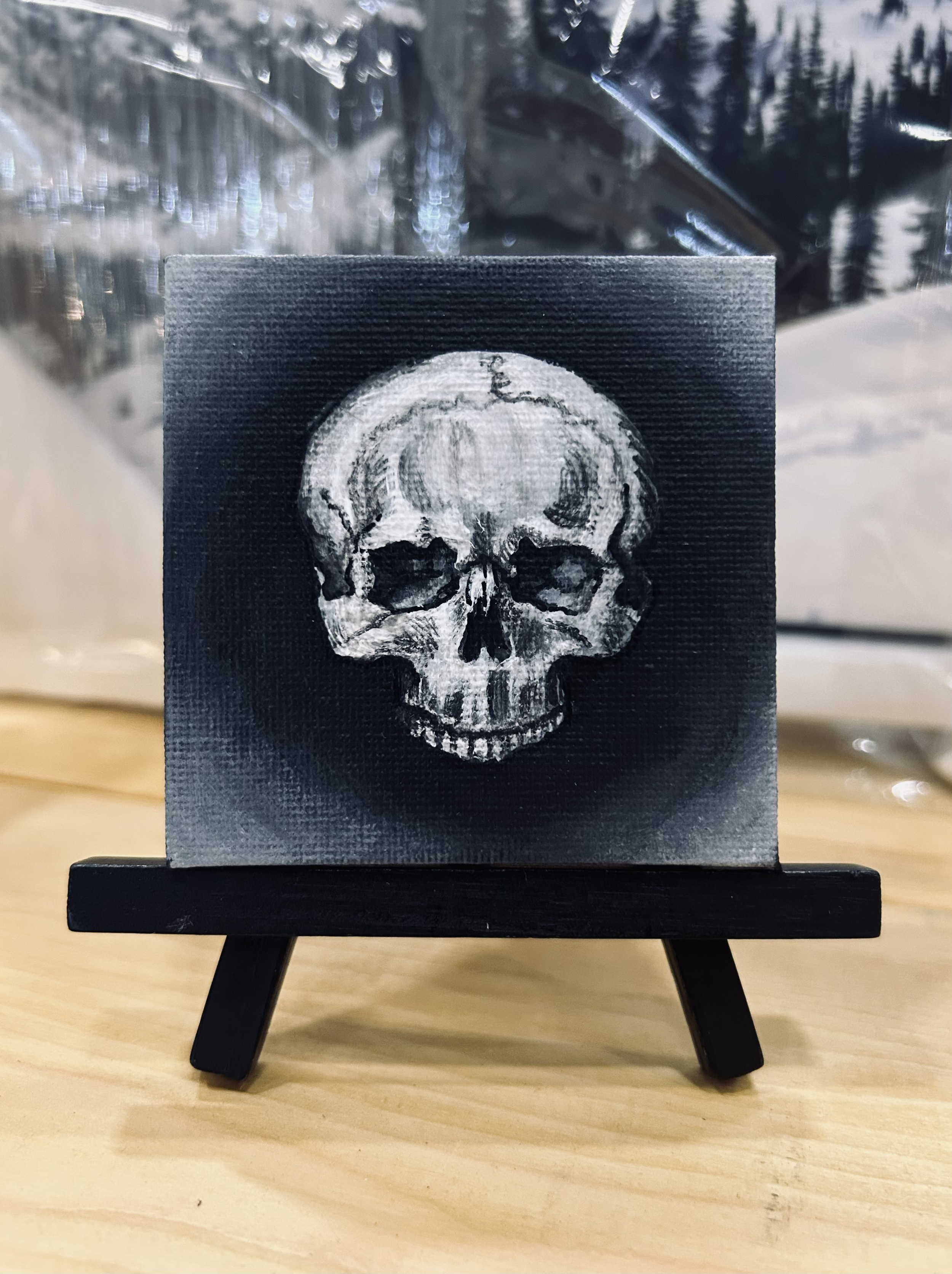 Mini Skull, 2025, acrylic and glow-in-the-dark paint on 3”x3” canvas