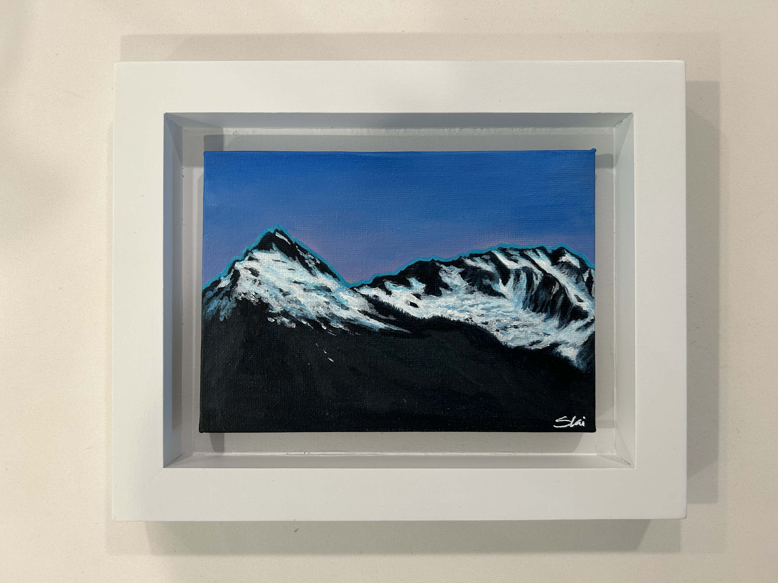 Tantalus Range, 2024, acrylic on 5”x7” canvas, mounted in floating wood frame.